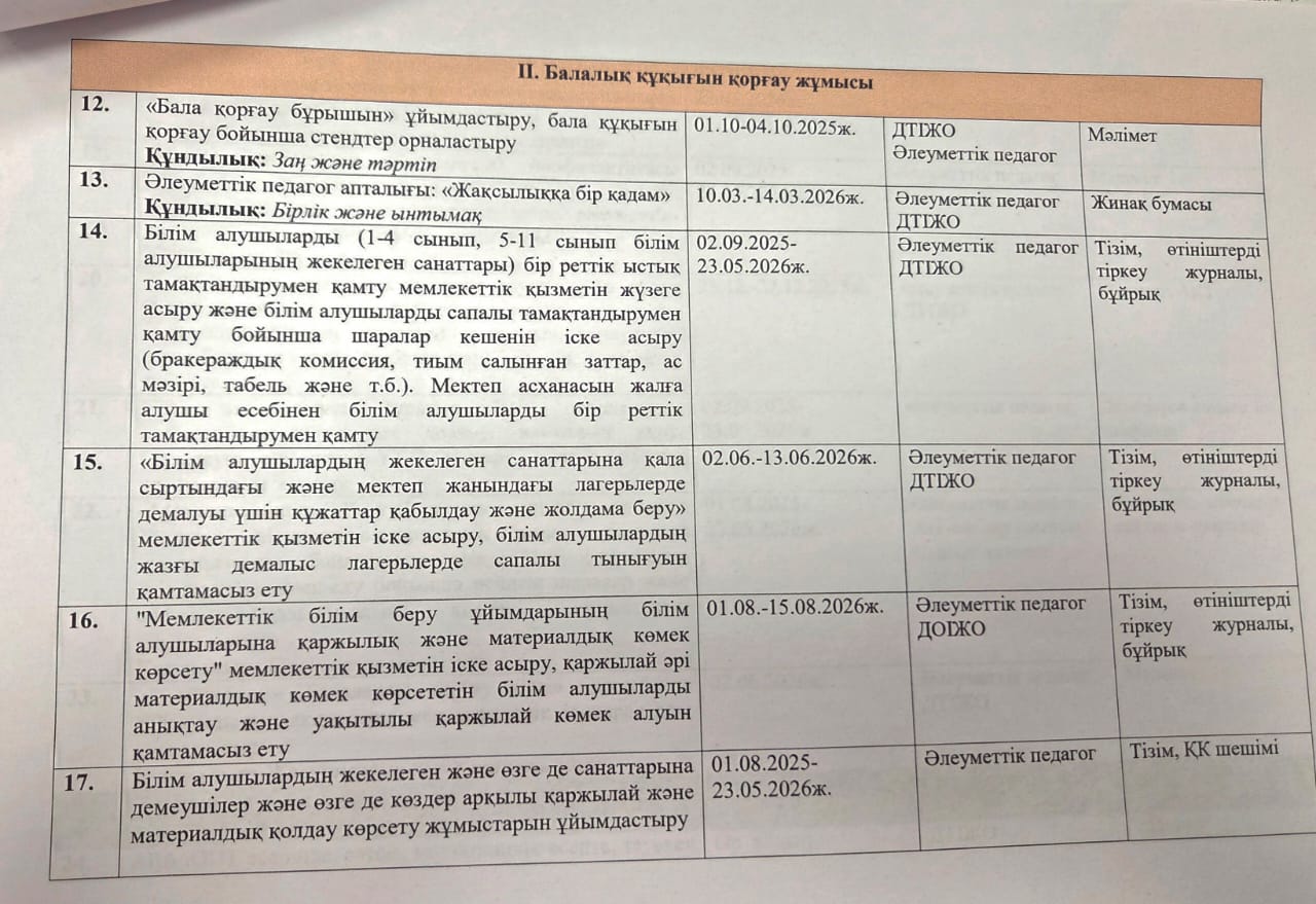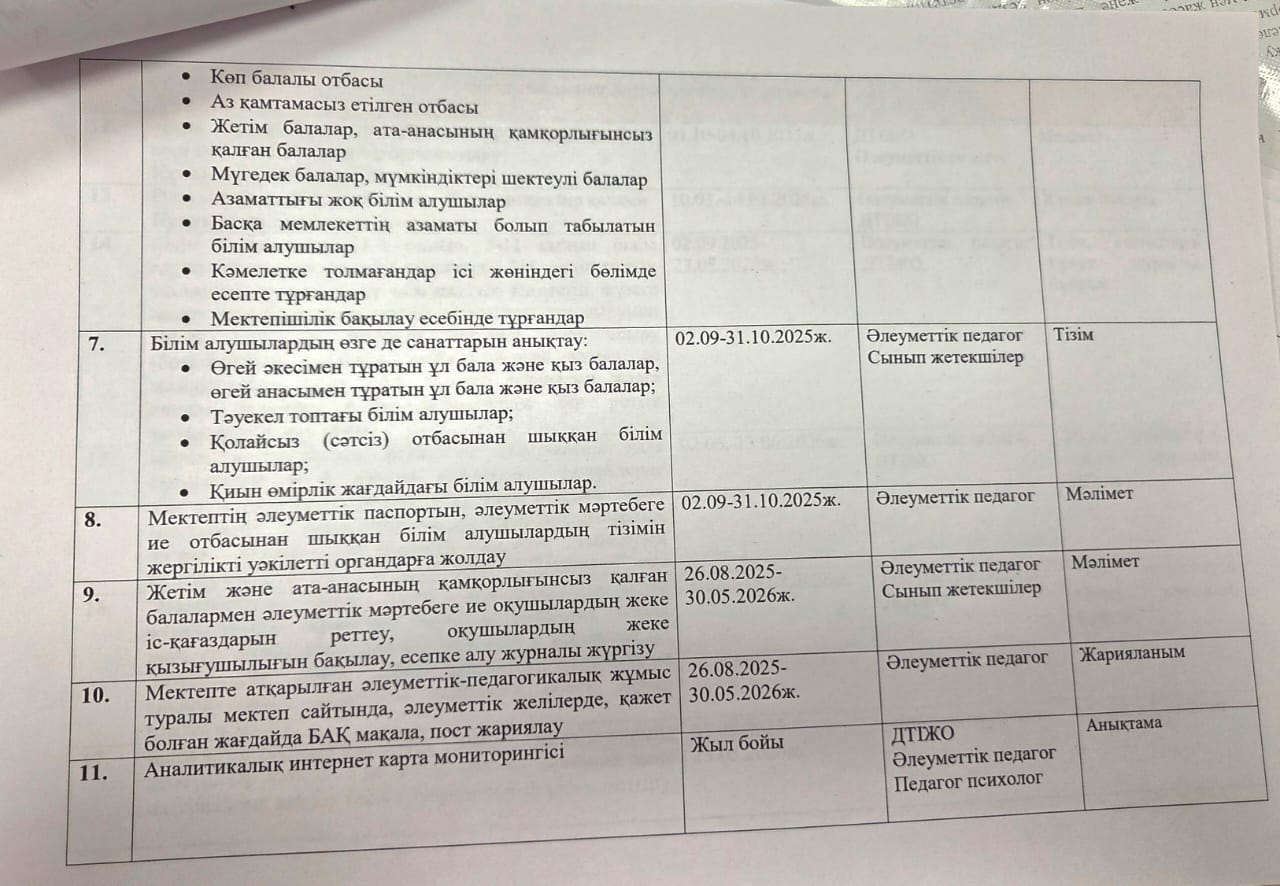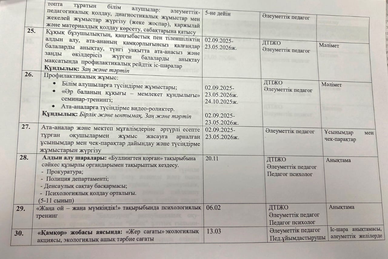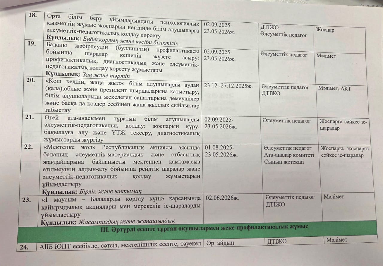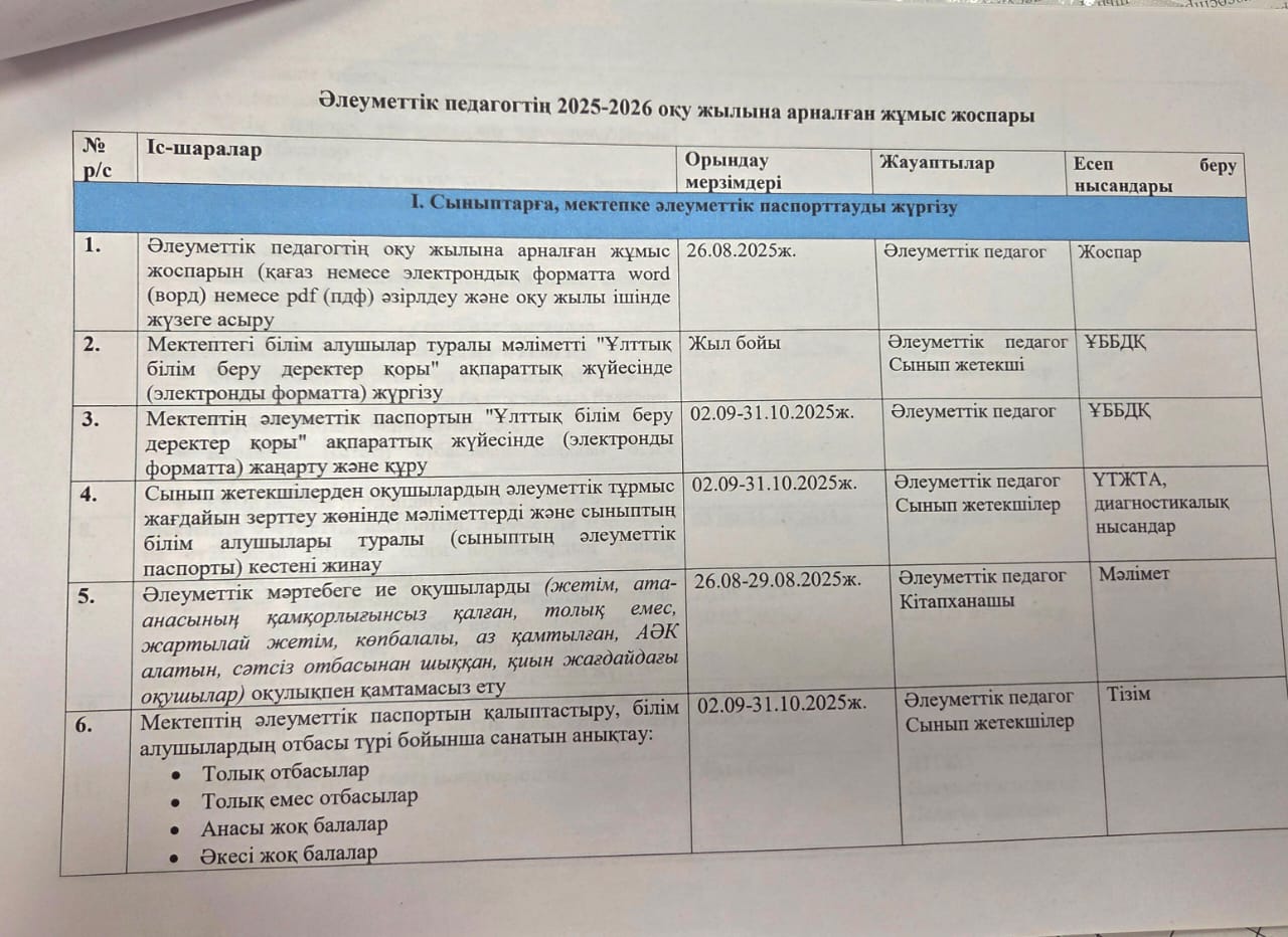 » » » » Әлеуметтік педагогтің 2025-2026 оқу жылына арналған жылдық жоспары