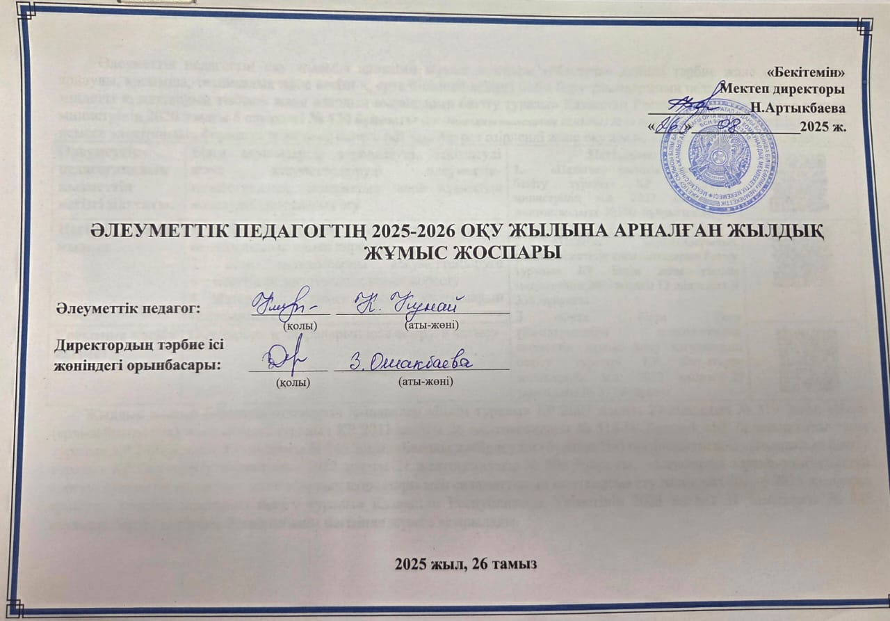 Әлеуметтік педагогтің 2025-2026 оқу жылына арналған жылдық жоспары