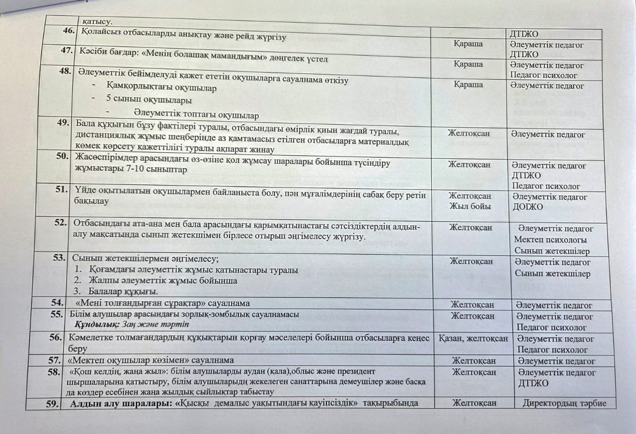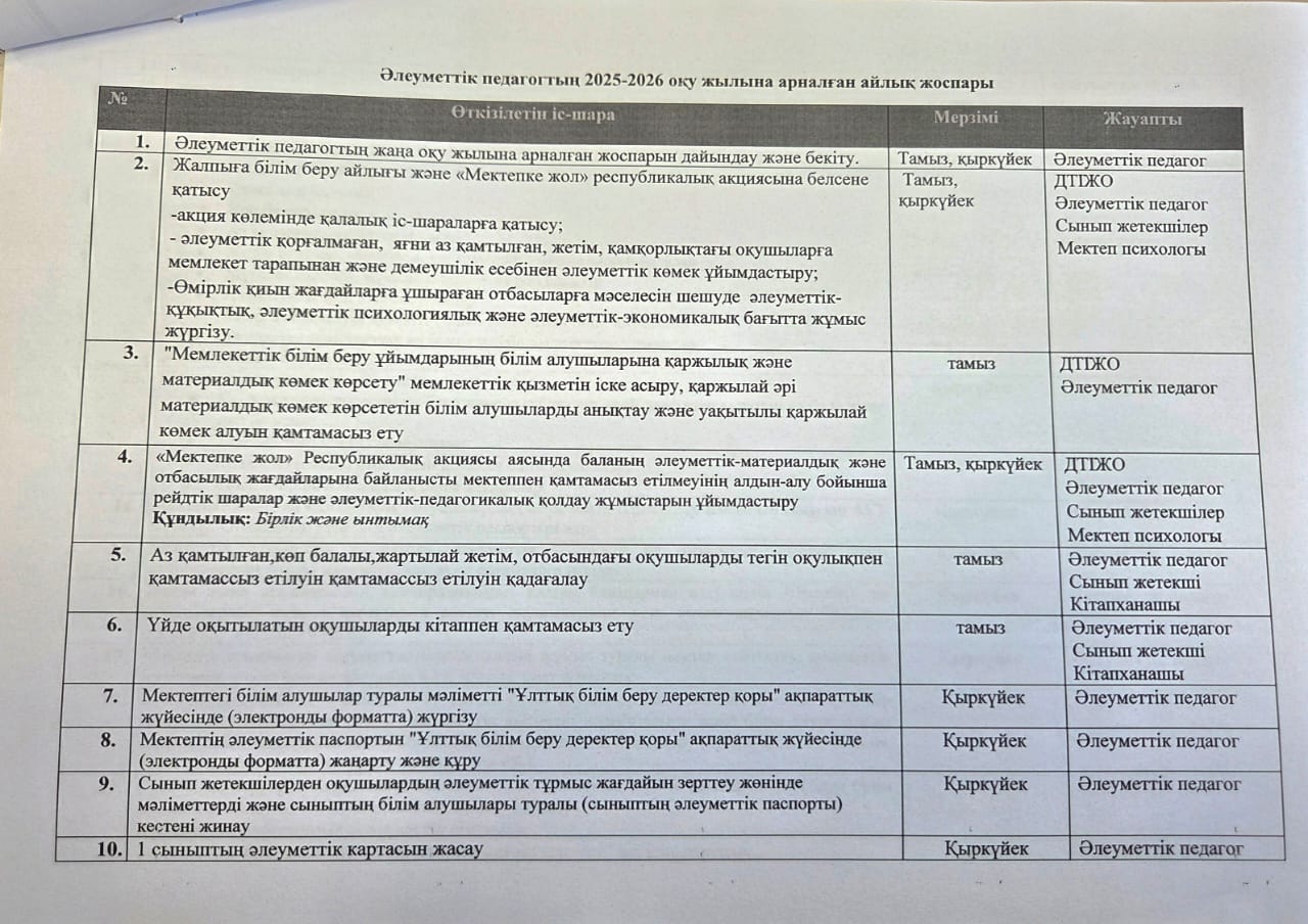 » » » » Әлеуметтік педагогтің 2025-2026 оқу жылына арналған айлық жоспары