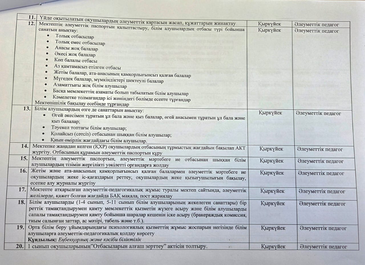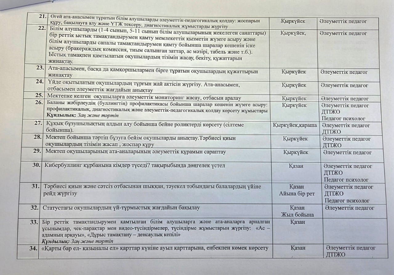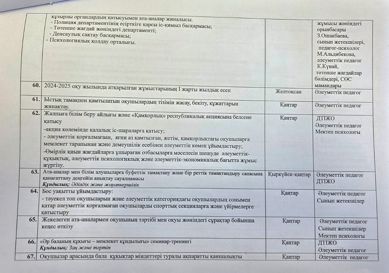 Әлеуметтік педагогтің 2025-2026 оқу жылына арналған айлық жоспары » Жамбыл атындағы орта мектеп