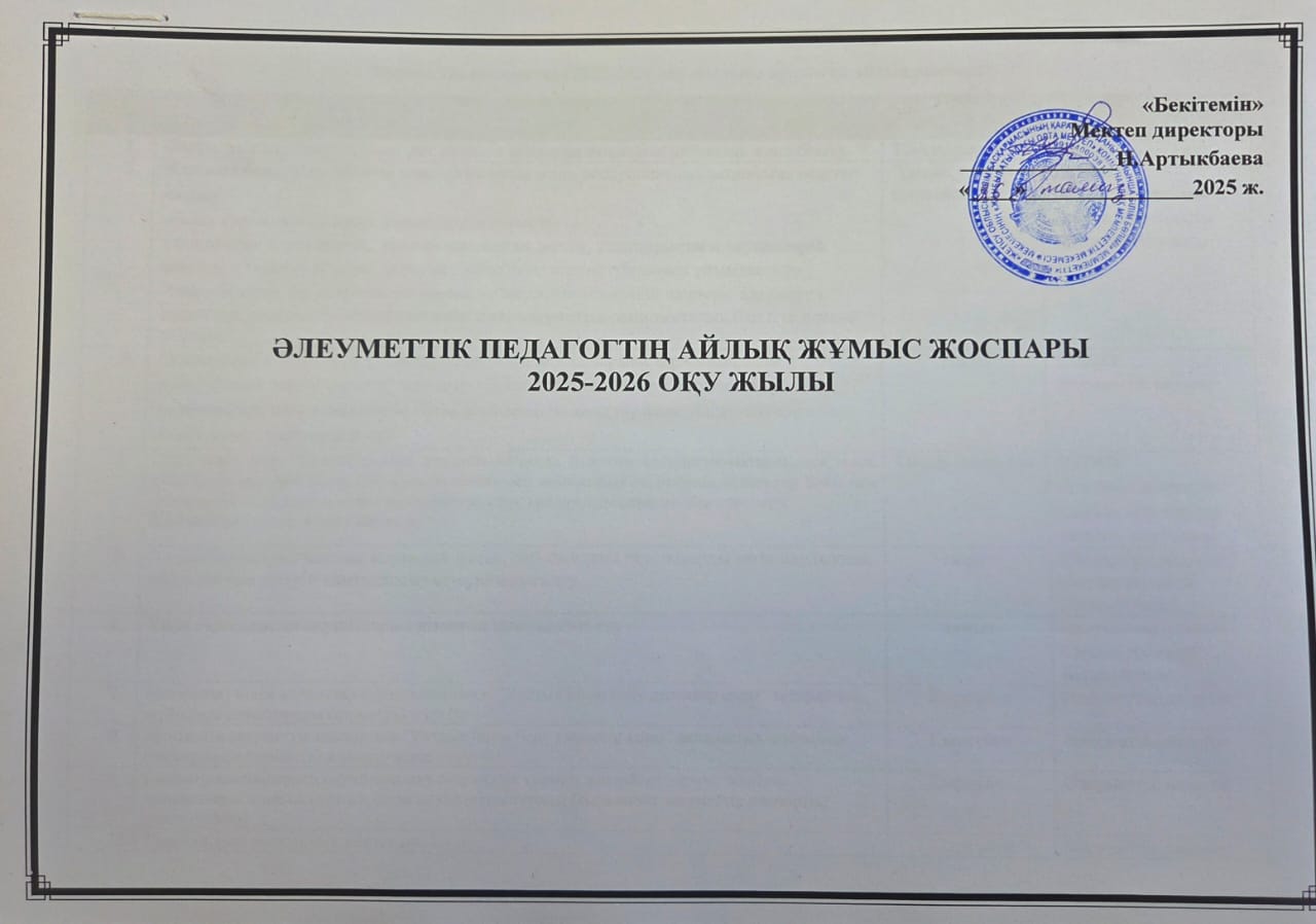 Әлеуметтік педагогтің 2025-2026 оқу жылына арналған айлық жоспары