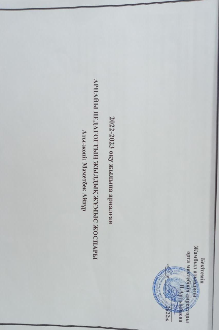 Арнай педагогтың жылдық жоспары 2022 - 2023 оқу жылы » Жамбыл атындағы орта мектеп
