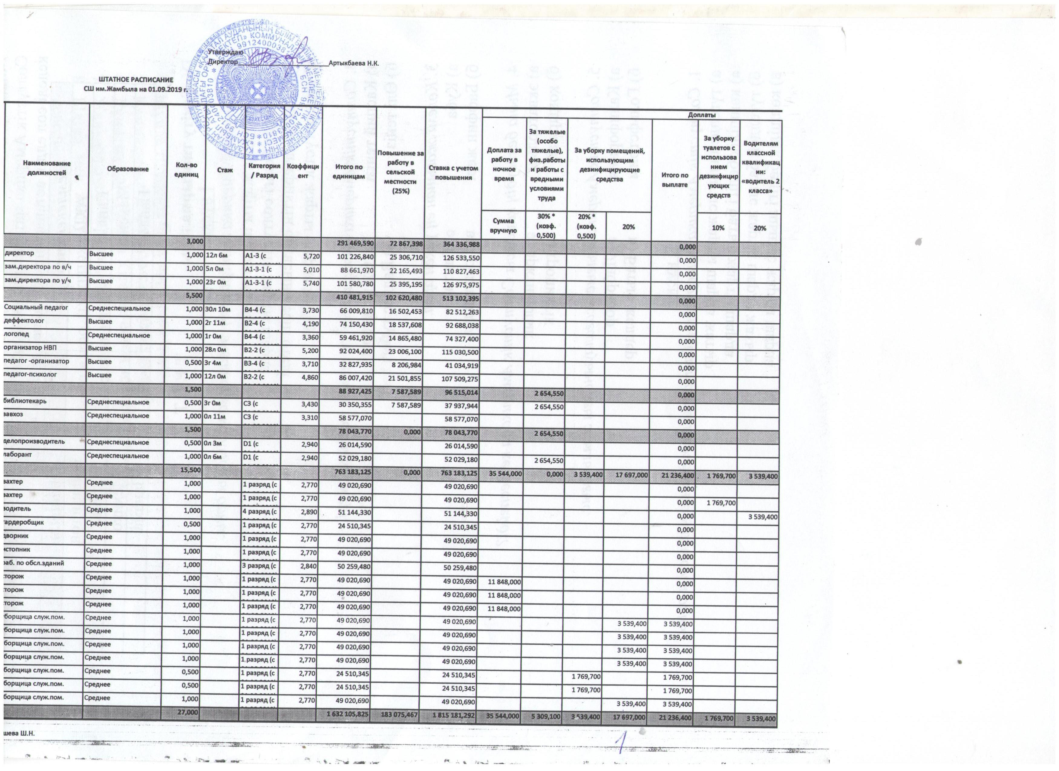 » » » Жамбыл атындағы орта мектебінің тарификациясы 2019-2020 оқу жылы