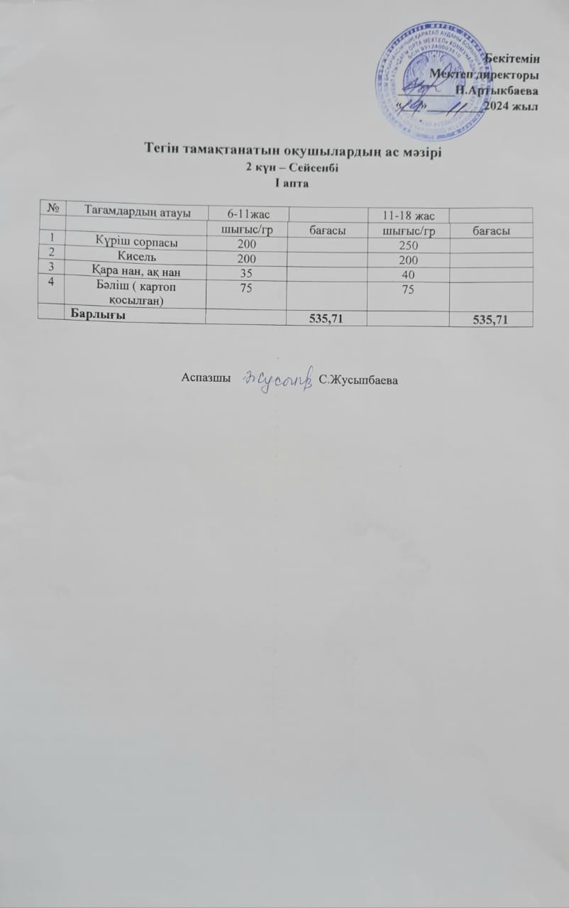Тегін тамақтанатын оқушылардың ас мәзірі » Жамбыл атындағы орта мектеп
