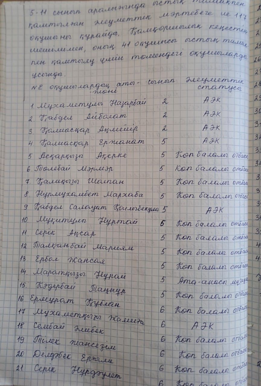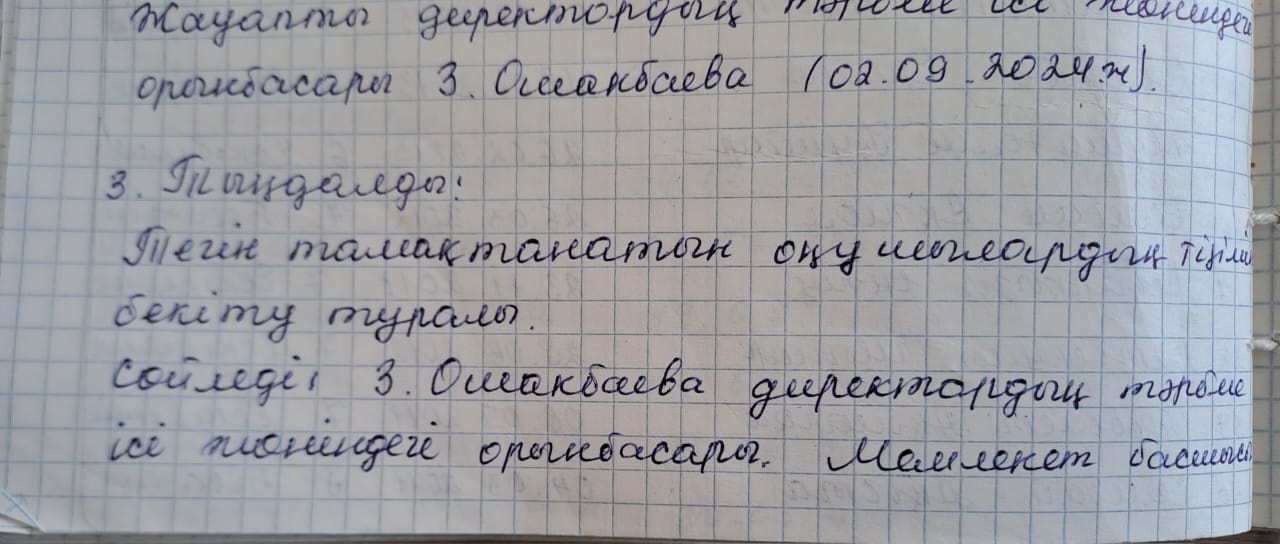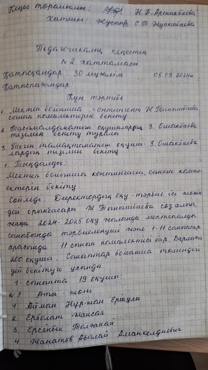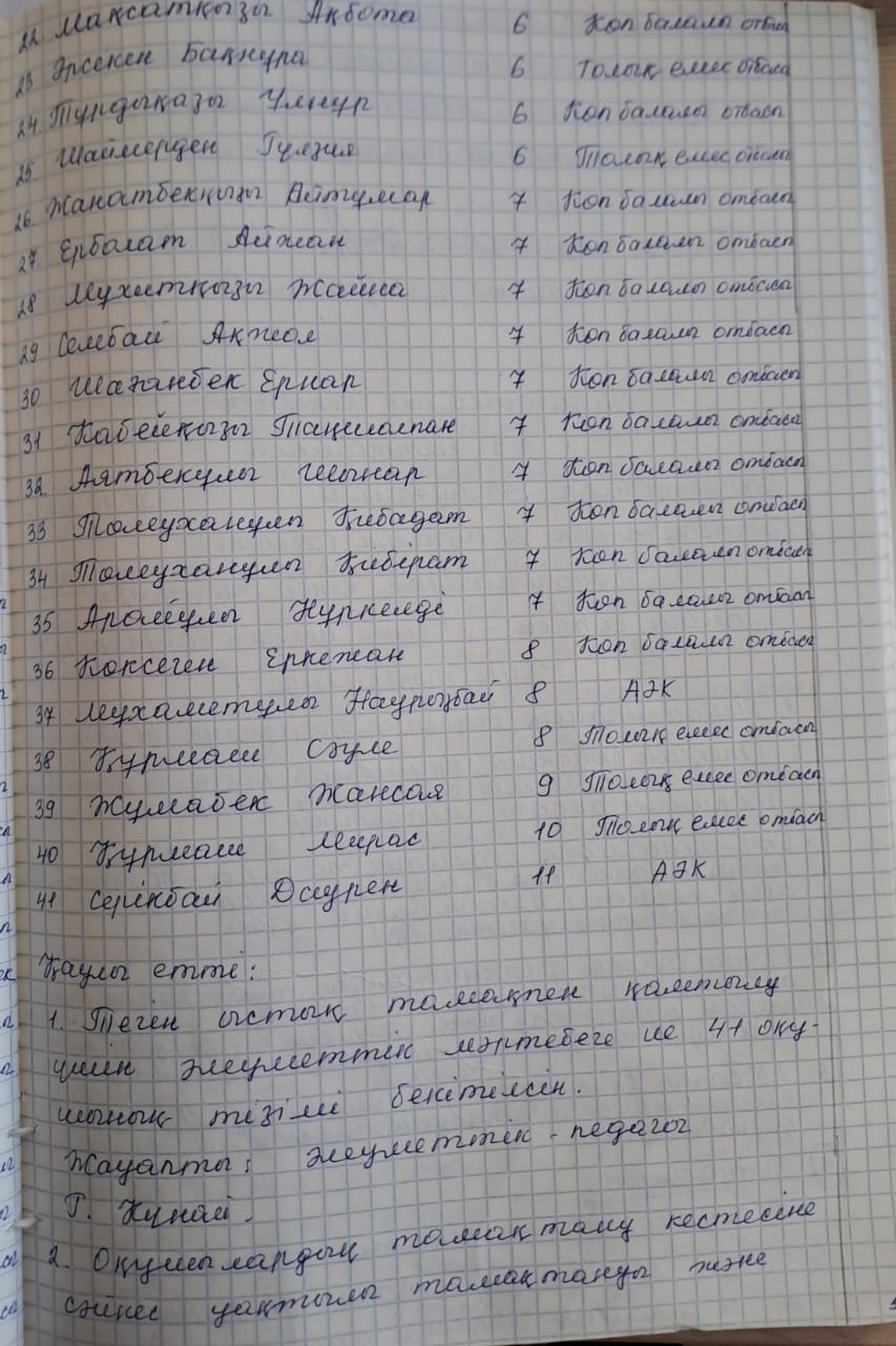 Тегін тамақтанатын тізімін бекіту Педагогикалық кеңестің №2 хаттамасы