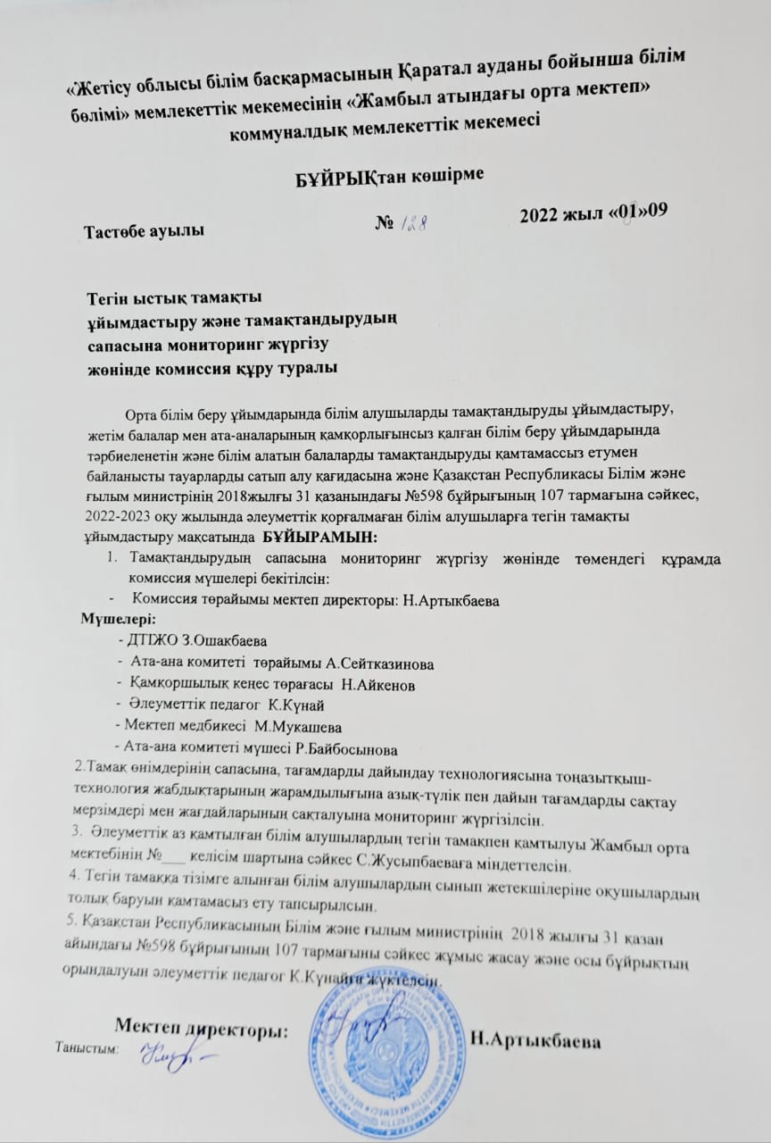 Бракераждық комиссия құру туралы » Жамбыл атындағы орта мектеп