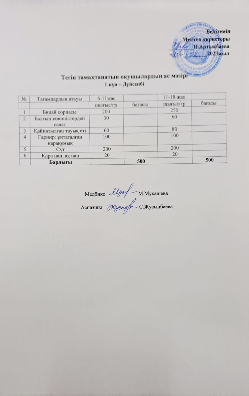 Тегін тамақтанатын оқушыларды бір күндік тамақпен қамту » Жамбыл атындағы орта мектеп